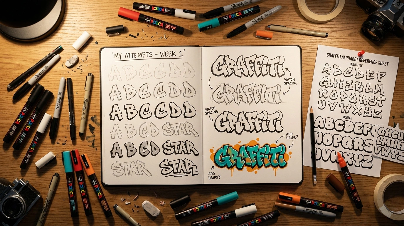 Learning how to draw graffiti starts with understanding that every piece on every wall came from the same place: someone practicing letterforms in a sketchbook until their hand knew what to do without thinking. There is no shortcut past that stage. But there is a smart order to learn in, and following it will save